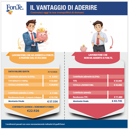 Confronto tra due possibili scenari: da una parte un lavoratore che sceglie di aderire a Fon.Te. nel Comparto Sviluppo